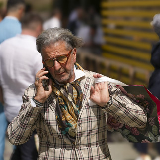 Além de novidades, o evento reúne o público masculino mais elegante da moda. Compradores, consultores, estilistas, donos de marca e outros profissionais do setor compõem um mix de muitos e diferentes países. Mas parecem todos italianos, no melhor sentido do bom uso da alfaiataria com pitadas de excentricidade, contemporaneidade e/ou humor, cada um com seu toque pessoal ao estilo made in Italy de usar ternos ajustados com colete, e calça com barra mais curta e meias coloridas.
